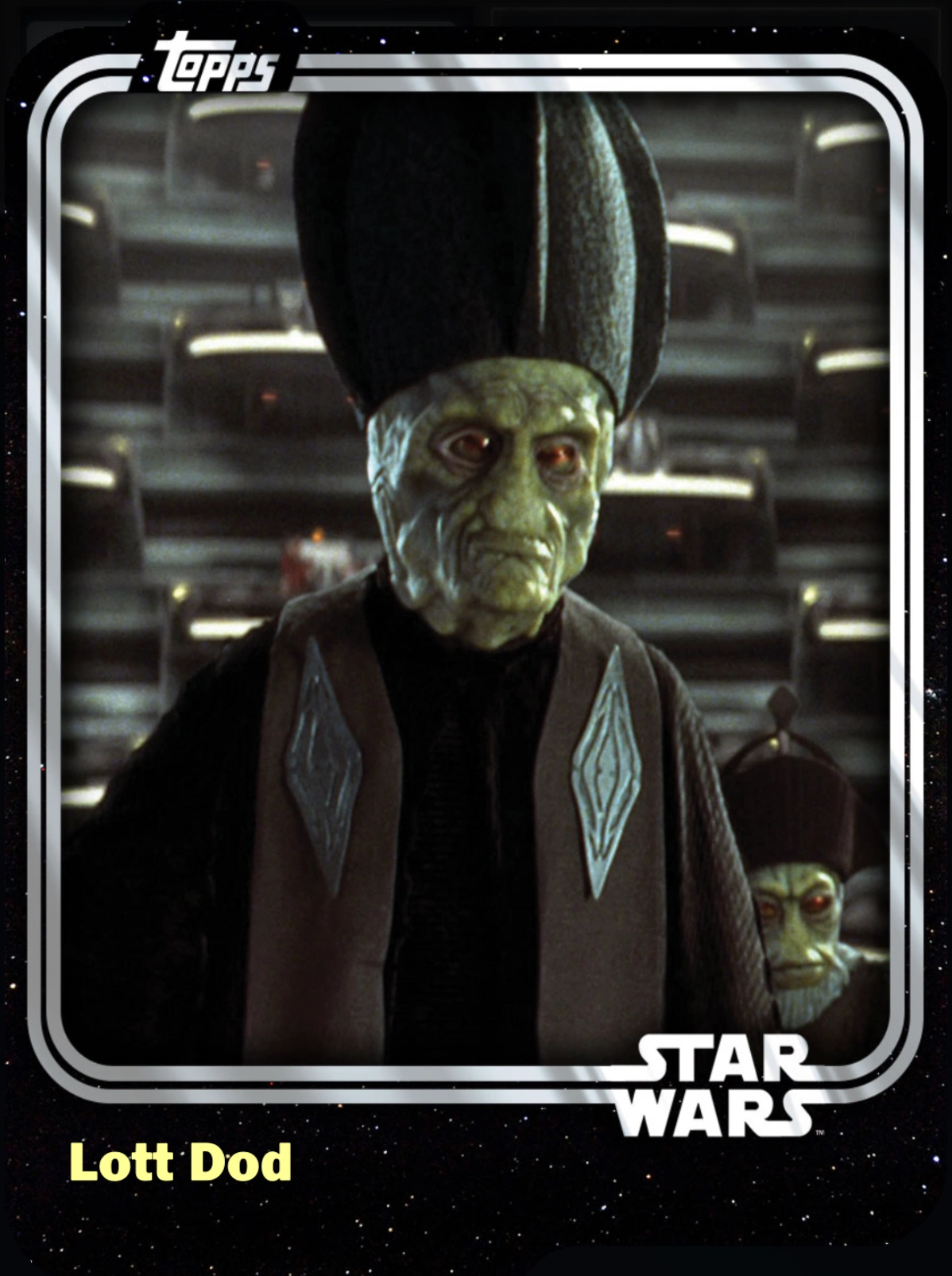 As the Neimoidian senator of the Trade Federation, Lott Dod is politically manipulative and exploits conflicts within his system to gain favor from the Senate. When the Free Trade Zones become eligible for taxation by the Republic, Dod invades the planet of Naboo with his droid army, at the behest of Darth Sidious. Despite the failed invasion, Dod continues to represent the Federation in the Senate, determined to protect the interests of his corrupt constituents.